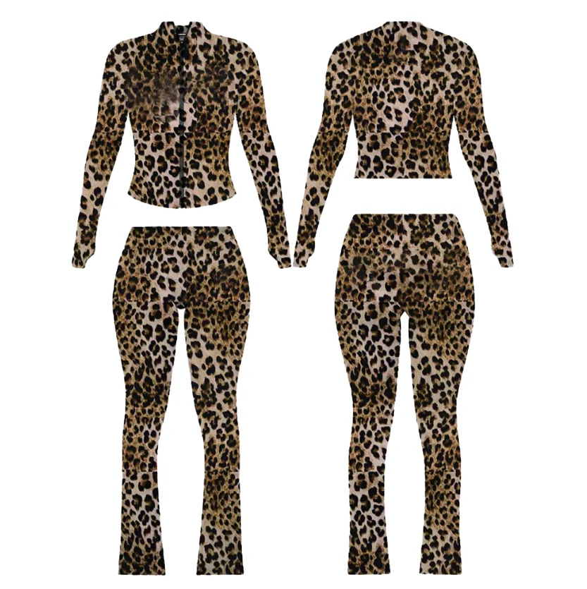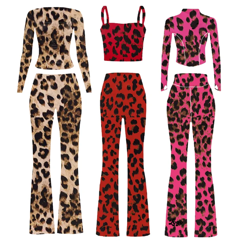 Custom Cheetah Leopard Print Women Set Valentine's Day Loungewear Women New Styles Flare Pants 2 Piece Sets